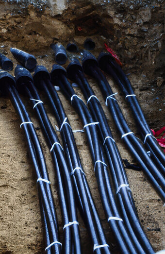 Complete installation of underground service cables from the nearest network pillar or pit to your property, including all necessary trenching, conduit installation, and terminations.